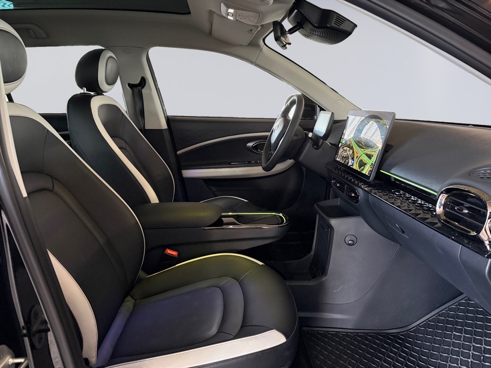 - Musta/Valkoinen Vegaaninahkasisustus